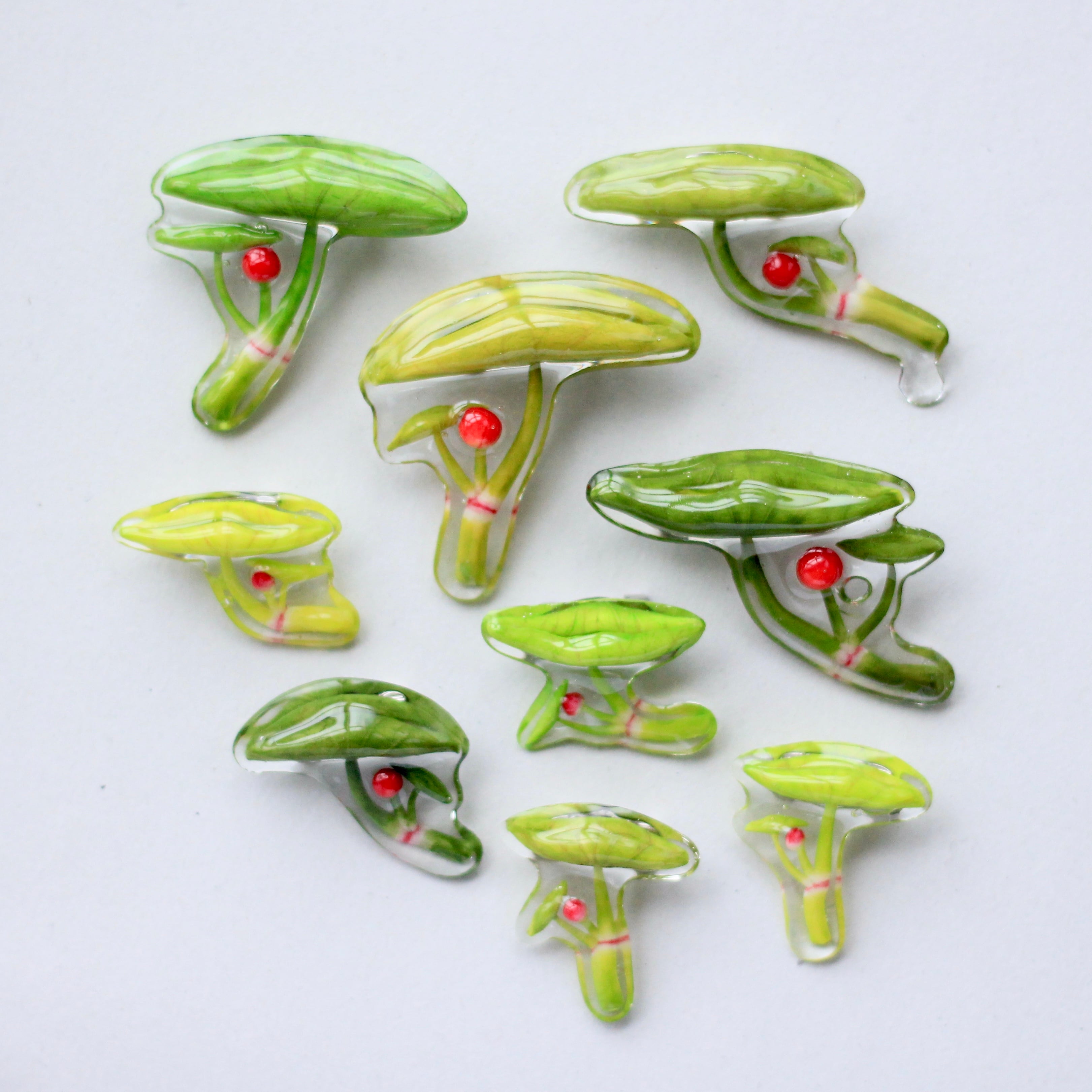 小ぶりなじゅんさいブローチは、服につけても帽子につけても